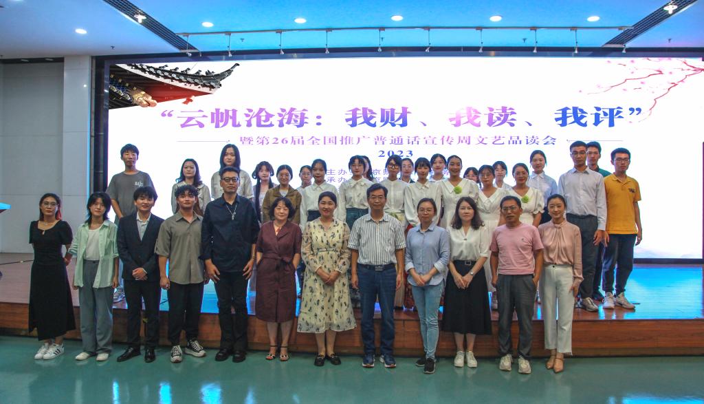 9月21日晚,我校“云帆沧海:我财、我读、我评”暨第26届全国推广普通话宣传周文艺品读会在仙林校区图书馆一楼报告厅举行。教务处副处长陈志琴、新闻学院院长宋祖华、新闻学院副院长刘霞云、外国语学院教授孙冬、教务处语委办老师方定宝、新闻学院普通话推广和指导老师等作为嘉宾参与活动。晚会为我校首届“云诵读”大赛和首届“书评大赛”获奖选手颁发了证书,来自各学院的学生代表现场诵读了获奖代表作品。