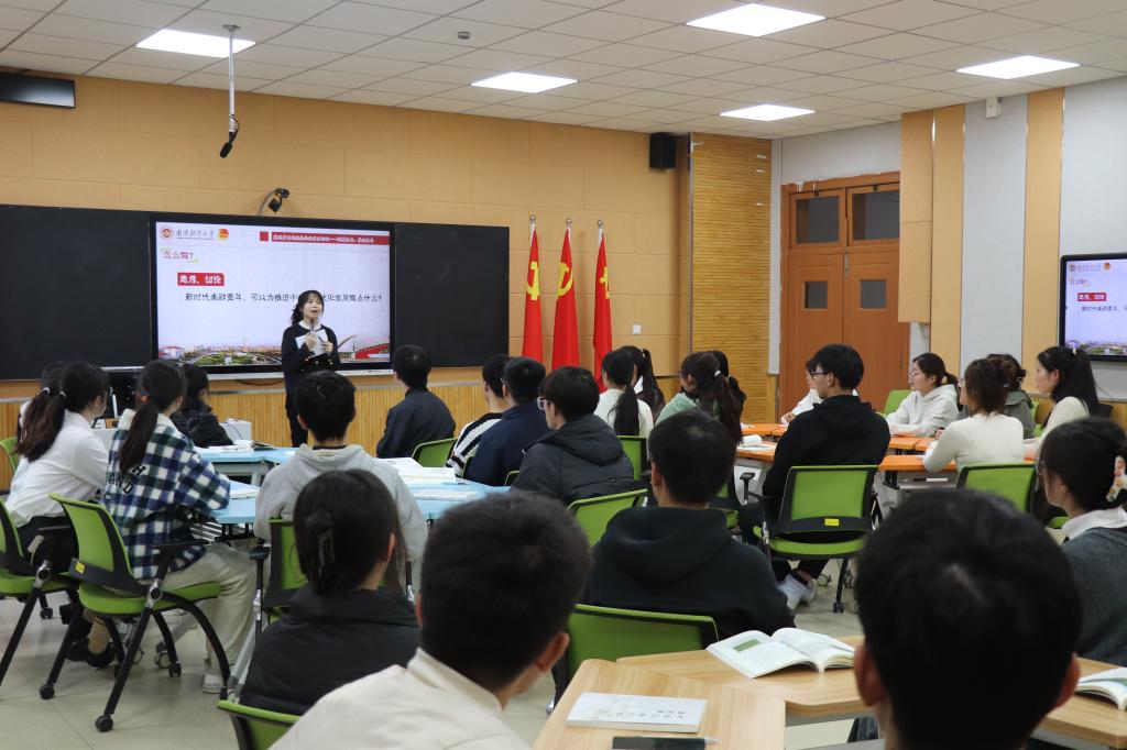 11月17日下午,校团委在仙林校区博文楼103教室开展团员和青年主题教育支部学习示范课。我校百舸青年讲师团成员、马克思主义学院青年教师顾高菲结合“强国复兴”主题,为智慧会计2201班团支部作“自立自强、挺膺担当——让青春在中国式现代化进程中绽放绚丽之花”专题学习分享。团江苏省委宣传部主任科员欧阳团受邀听课指导并作点评,我校团委书记张蔚伟、副书记胡新蕲以及二级学院团委负责人代表参加活动。