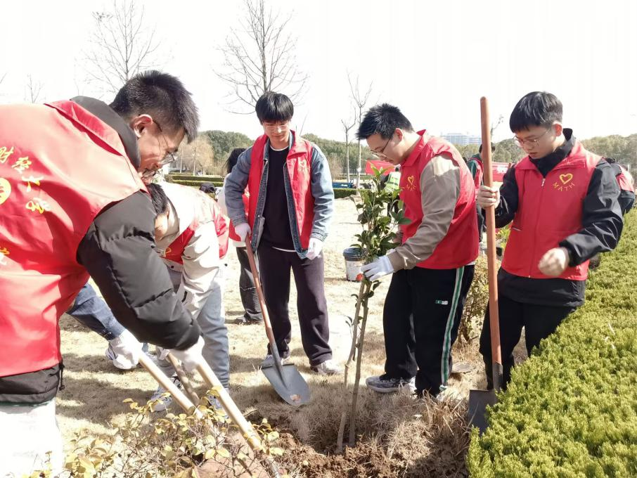 应用数学学院联合后勤基建处组织开展“财大绿意,‘数’我添彩”活动。师生们挥锹铲土、扶苗踏实、浇水灌溉……一道道植树工序有序进行,现场热火朝天。经过一番努力,十余棵新植的桂花树在春日微风的吹拂下悄然挺立,为校园增添了一抹靓丽的绿色。