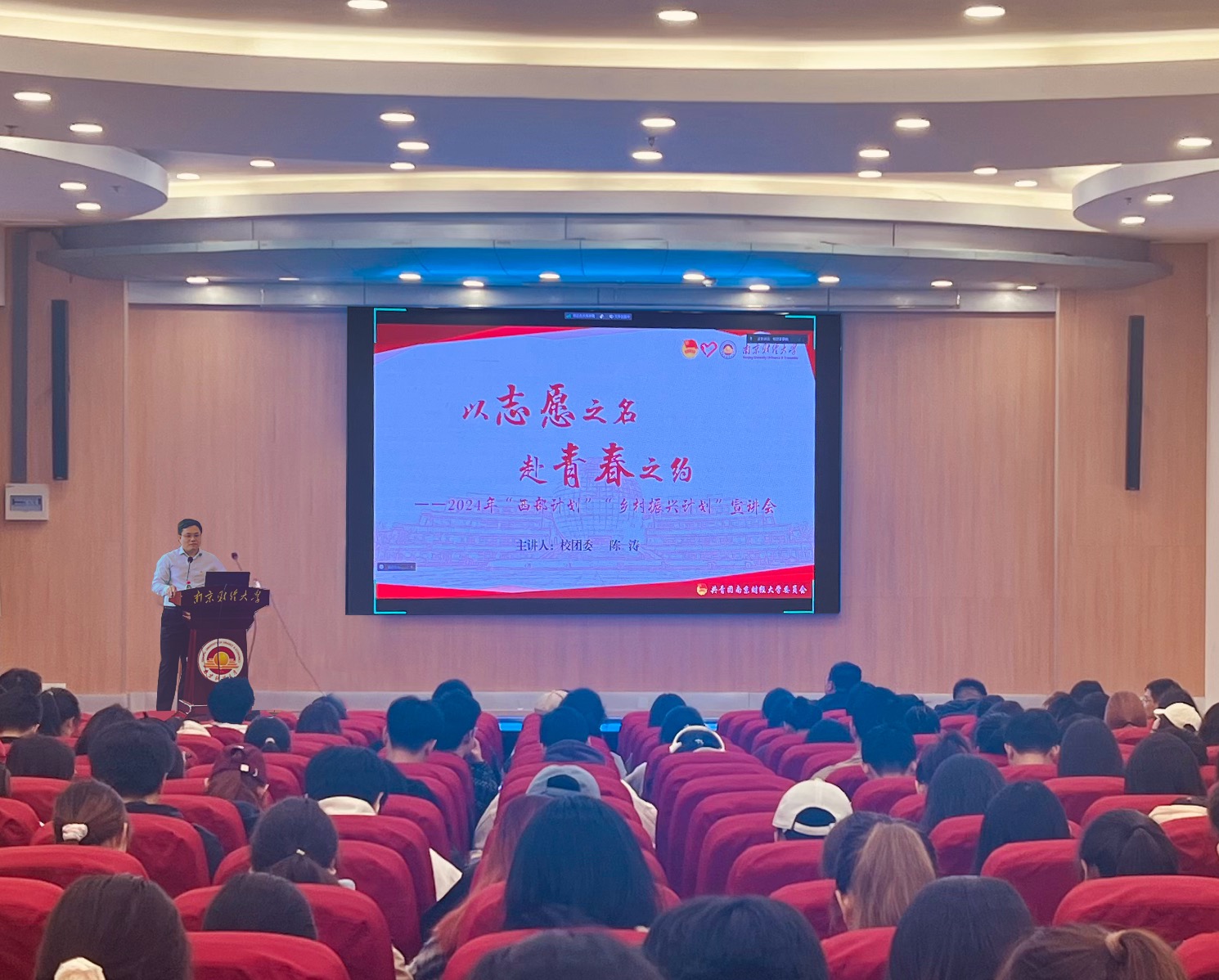 为进一步引导和鼓励我校青年到基层工作,主动融入国家发展大局,积极投身乡村振兴,4月25日下午,我校在仙林校区大学生活动中心三楼报告厅开展2024年“西部计划”“乡村振兴计划”宣讲会。校团委副书记陈涛、部分乡村振兴计划对接地团委负责同志、各学院团委书记、毕业班辅导员代表、各学院学生代表参加会议。