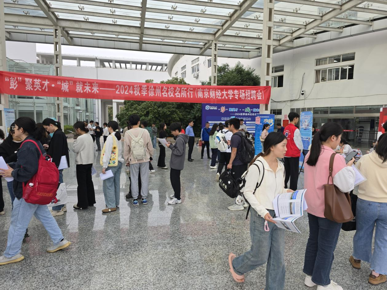 为进一步促进2025届毕业生就业,拓展毕业生就业渠道,10月15日下午,“‘彭’聚英才·‘城’就未来”2024秋季徐州组团招聘活动在仙林校区大学生活动中心举行。此次活动由中共徐州市委组织部(市人才办)、徐州市人力资源和社会保障局、我校主办,中共徐州市云龙区委组织部(区委人才办)、徐州市云龙区科技镇长团、徐州市云龙区人力资源和社会保障局、我校大学生就业与创业指导中心和国际经贸学院承办。国际经贸学院党委书记周亚芳,学生处副处长、大学生就业与创业指导中心主任李慕原,国际经贸学院党委副书记周进进深入会场与用人单位和毕业生交流,详细了解用人单位和毕业生的需求。