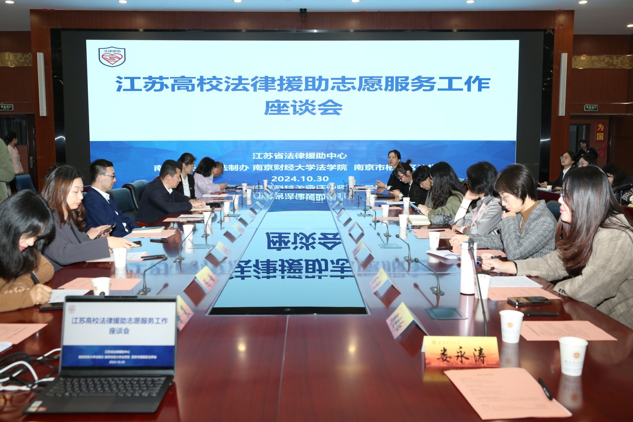 10月30日,由江苏省法律援助中心主办,我校法制办公室、法学院,栖霞区法学会共同承办的高校法律援助志愿服务座谈会在仙林校区工科楼二楼召开。江苏省法律援助中心主任李凤友、校法制办主任吴庚祐、法学院院长胡宜奎、法学院党委副书记刘英华、江苏恒爱法律援助与研究中心理事长叶晓辉以及江苏省16家高校法律援助组织代表参加座谈会。座谈会由江苏省司法厅法律援助中心副主任范婷婷主持。