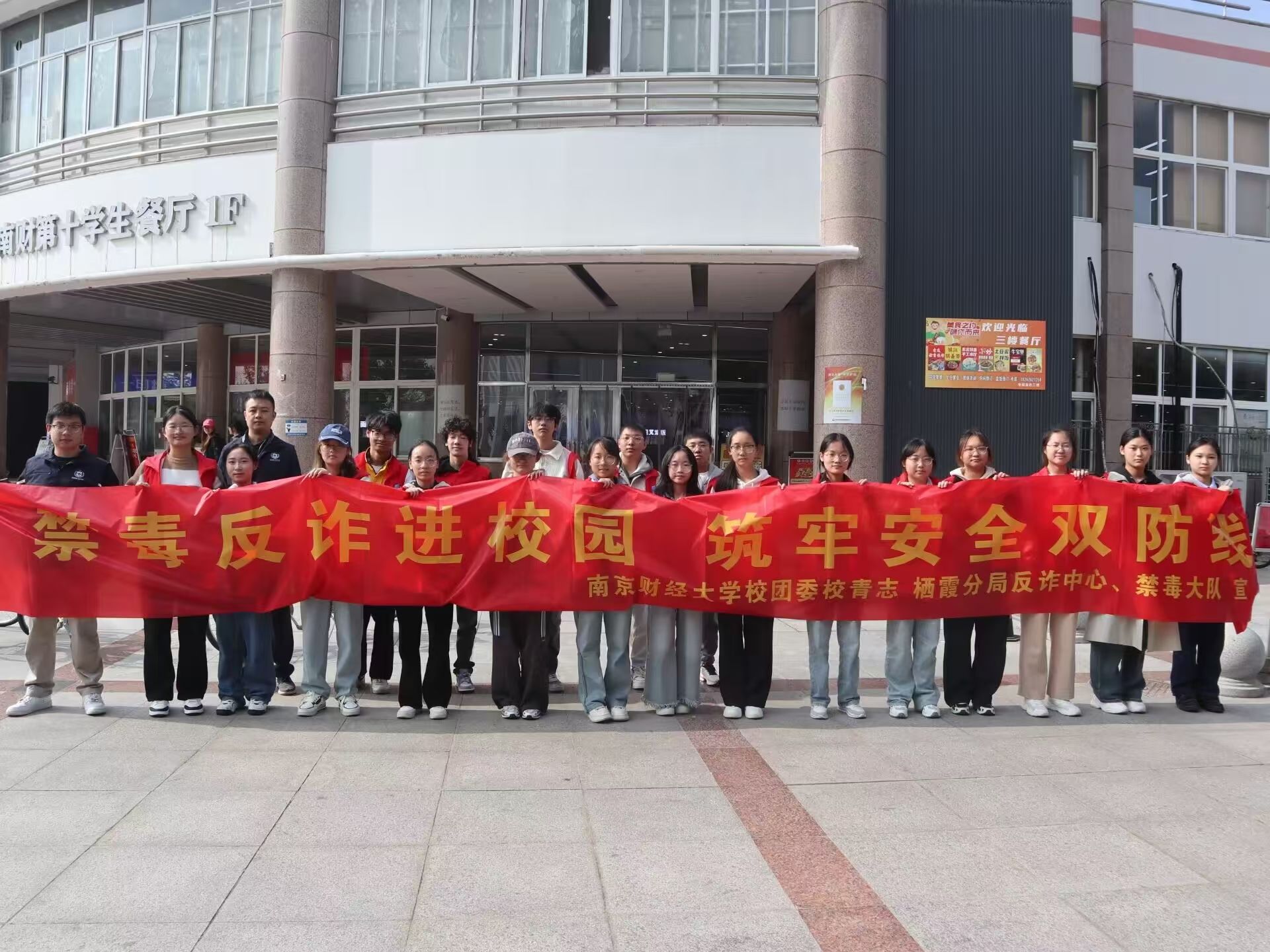 11月13日,校团委志愿者工作部、校青年志愿者协会联合南京市公安局栖霞分局禁毒大队、反诈中心在仙林校区中苑食堂广场开展禁毒反诈宣传活动。本次活动以“禁毒反诈进校园,筑牢安全双防线”为主题,包括科普宣传、趣味互动、有奖问答等多个环节,吸引了500余名学生参与。