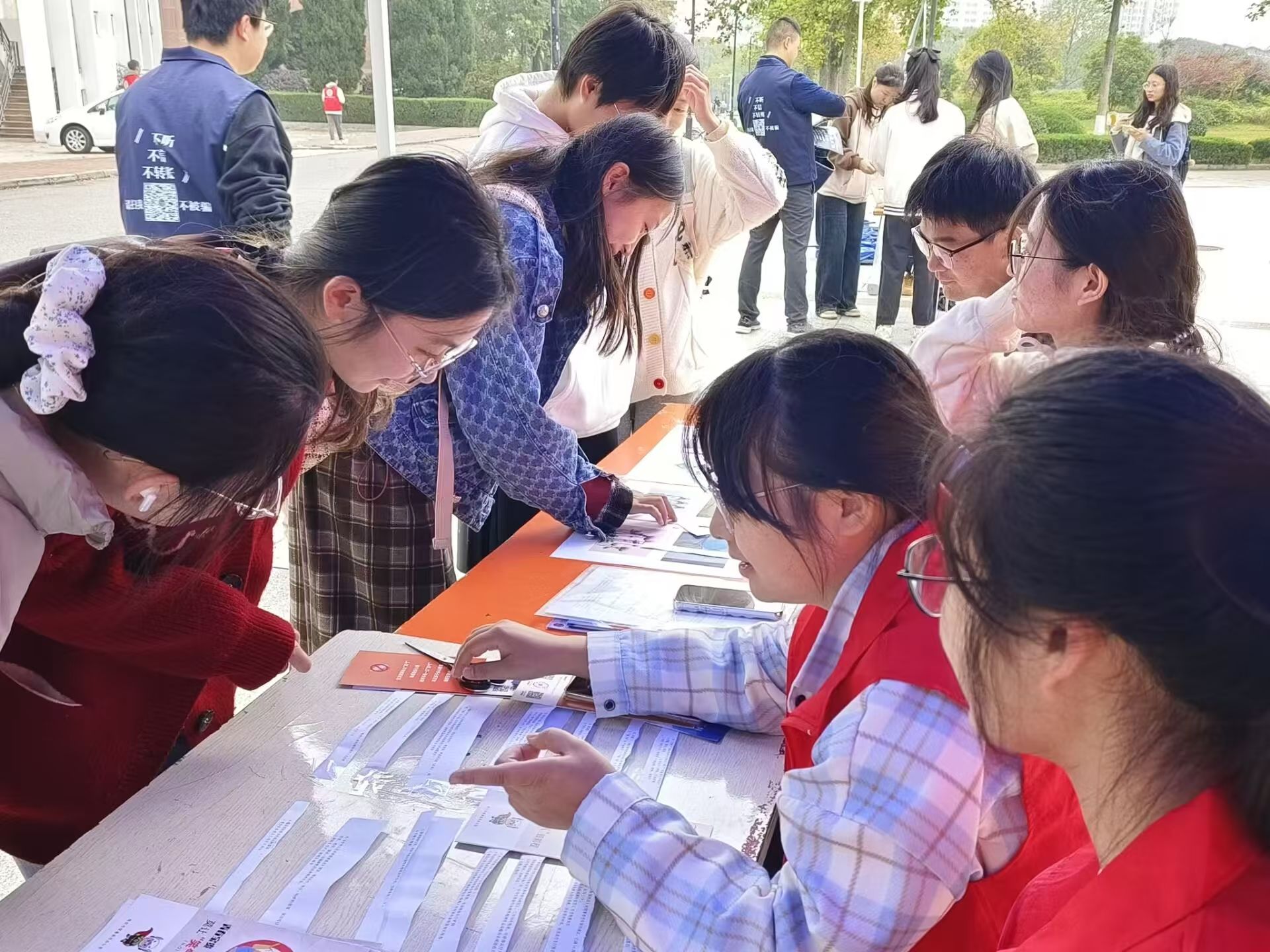 活动中,志愿者集中展示了各类毒品图片,让同学们对毒品有了直观认识。通过科普宣传手册,同学们详细了解了毒品的定义、原理以及对个人、家庭及社会的严重危害。志愿者们分享了辨别吸毒人员的方法以及远离毒品的实用技巧,如掌握毒品知识、不轻信他人、远离易染毒场所、拒绝陌生人“馈赠”等。活动现场还设置了多个互动环节,将毒品知识与谜语相结合进行有奖竞猜、邀请同学们对诈骗案例进行甄别分析等。
