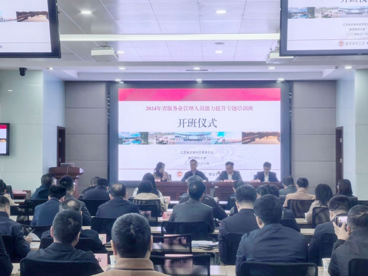 为学习贯彻党的二十届三中全会精神,全力构建优质高效服务业新体系,推动服务业高质量发展,11月19日,全省服务业管理人员能力提升专题培训班在我校举办。江苏省发展和改革委员会二级巡视员曹阳,我校副校长张炳出席开班仪式。全省各设区市发展改革委服务业工作分管领导和处室负责人、部分县(市、区)发展改革部门服务业工作负责人等60余人参加培训。开班仪式由国际经贸学院副院长徐圆主持。