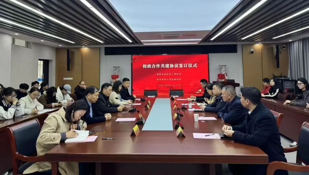 为进一步推动产学研深度融合,创新探索校政协同育人工作,11月20日,金融学院与栖霞区退役军人事务局校政合作共建协议签订仪式在仙林校区德经楼508室举行。党委常委、宣传部部长朱军,栖霞区退役军人事务局党委书记、局长李斌,副局长黄志金,金融学院党委书记孙菲、院长宣烨、党委副书记张士青及学院师生党员代表参加活动。