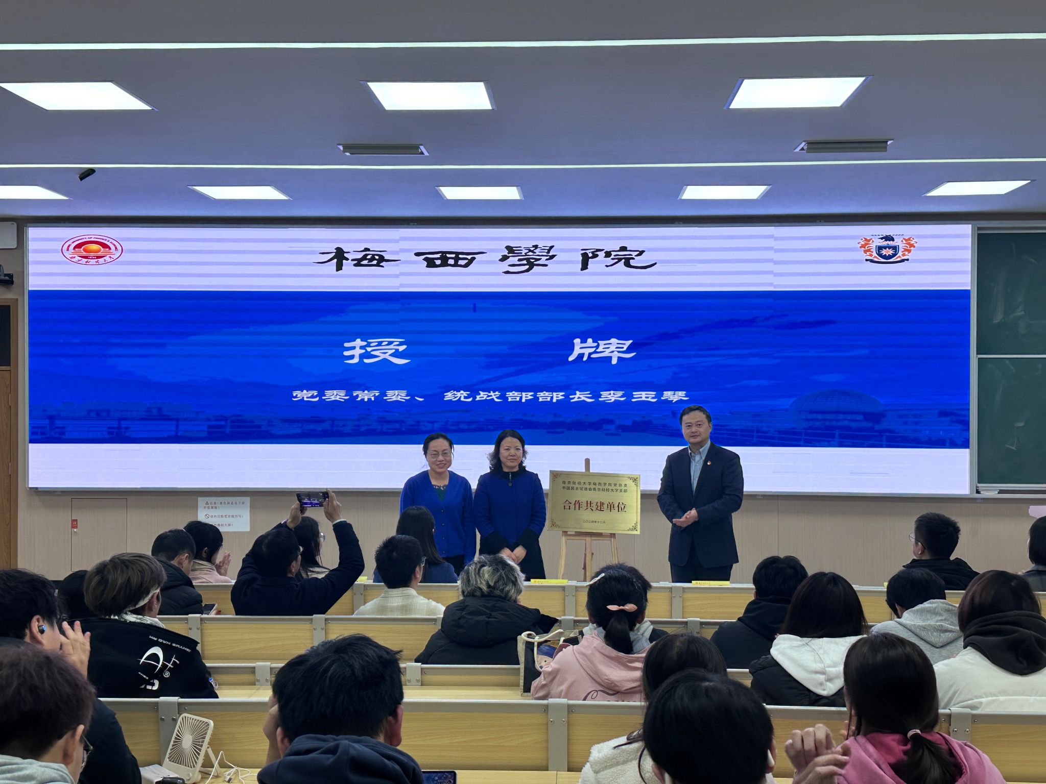 为切实贯彻落实校党委统战部“一院一派”工作部署,推进学院高质量发展,12月4日晚,梅西学院党总支与民进南京财经大学支部结对共建仪式在仙林校区博观楼201智慧教室举行。党委常委、统战部部长李玉琴,统战部副部长王鑫,学院党建联盟单位代表,民进南京财经大学支部全体成员,梅西学院全体工作人员及2024级新生参加活动。活动由梅西学院党总支书记张励行主持。