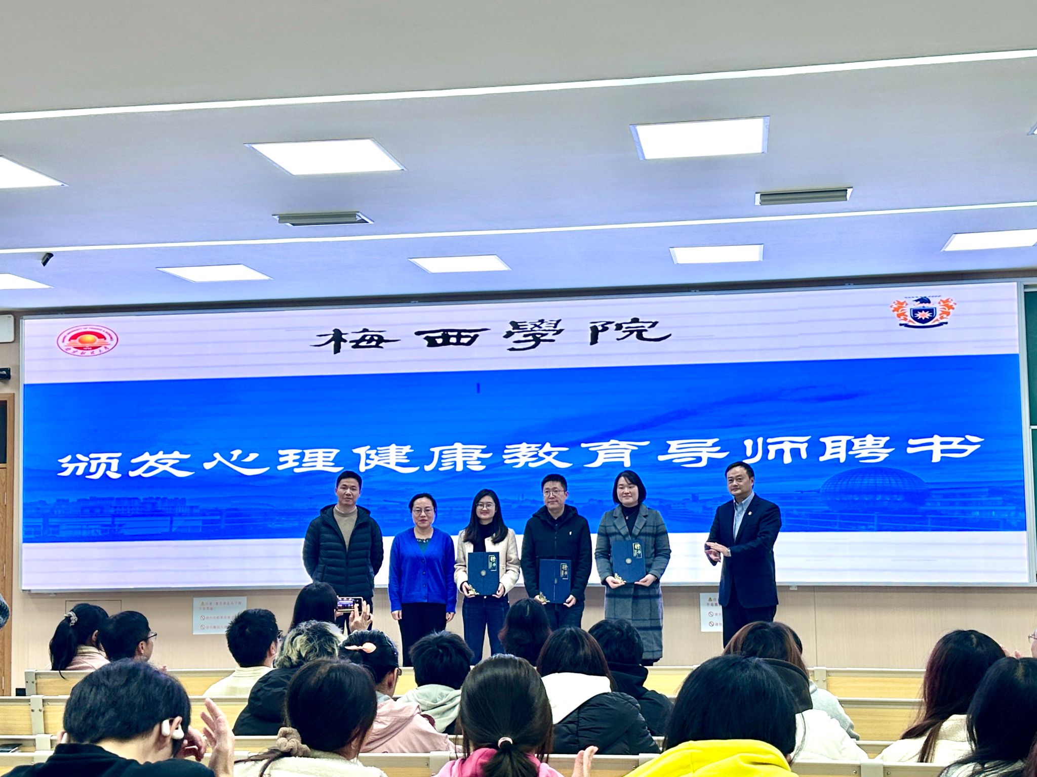 随后,张励行书记、杨智华院长、王鑫副部长共同为民进南京财经大学支部成员崔伟、吴琦、张思瑶老师颁发梅西学院心理健康教育导师聘书。学院希望通过这一举措,加强心理健康教育的普及度,为梅西学子健康成长成才提供更加专业的心理支持。