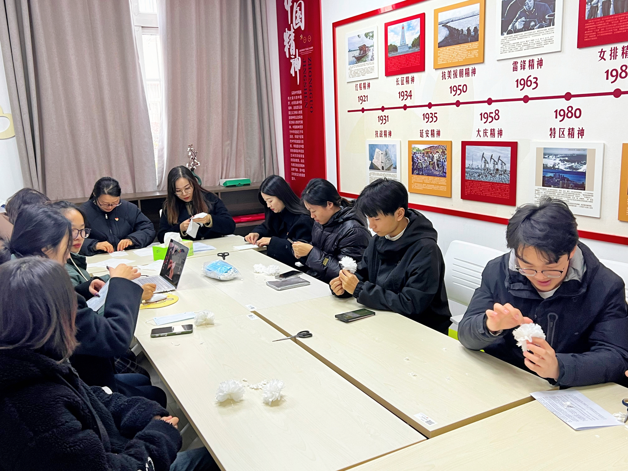 经济学院开展“铭记苦难历史,汲取前行力量”主题活动,师生共同制作小白花,几张纸,一折一捆一剪一撕,在大家的手中变成精致逼真的纸花,让无形的哀悼变得有形有情。组织观看纪录片《勿忘国耻,警钟长鸣》,集体默哀,表达哀思。学院党委副书记贾亦璞解读《中华人民共和国爱国主义教育法》和《南京市国家公祭保障条例》,希望青年学子铭记苦难历史,厚植家国情怀,汲取前行力量,展现青年担当,贡献青春力量。