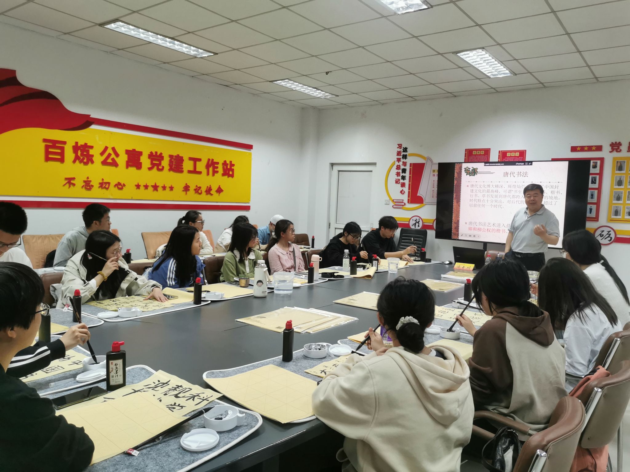 4月8日晚,由我校党委学生工作部策划的“财蕴星光成长计划”大学生素质能力提升特色课程开课,首场课程“翰墨书香·书法赏析与临写”在仙林校区中苑“百炼”公寓党建工作站开讲。本次课程特邀校“五老”讲师团成员、教工书画摄影协会副会长、江苏省教育书法家协会会员、省硬笔书法家协会会员冯玉川主讲,吸引了众多学生参与。