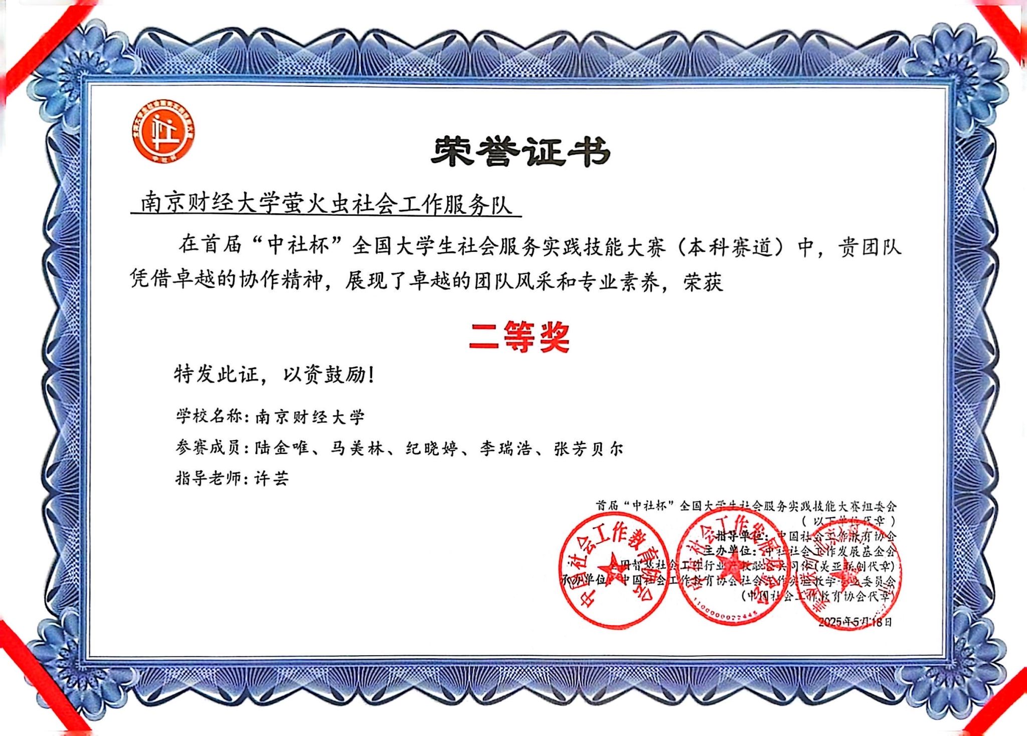 5月16日至18日,首届“中社杯”全国大学生社会服务实践技能大赛在中国劳动关系学院举办。我校“萤火虫”社会工作服务队凭借出色表现,斩获本科生组二等奖,展现了我校学子的专业素养与实践能力。