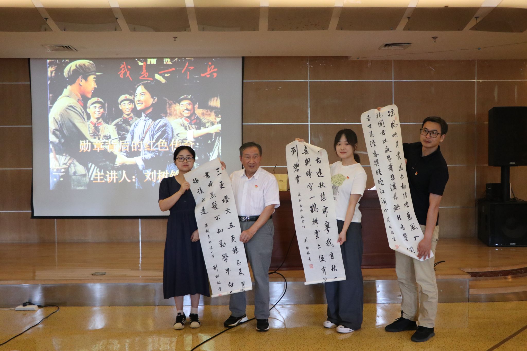 图书馆邀请我校老党员刘树铭讲授“我是一个兵——勋章背后的红色传奇”主题党课。图书馆全体党员和部分馆员代表,档案馆党支部、保卫处党支部、梅西学院师生党员代表共听党课。刘树铭老师结合自身经历,讲述了一个老兵的战斗经历以及和平年代在平凡岗位上作贡献的鲜活案例。刘老还向现场提问的师生赠送了亲笔题写的书法作品。党课结束后,举行了刘树铭老师《铭记实录集》馆藏捐赠仪式。