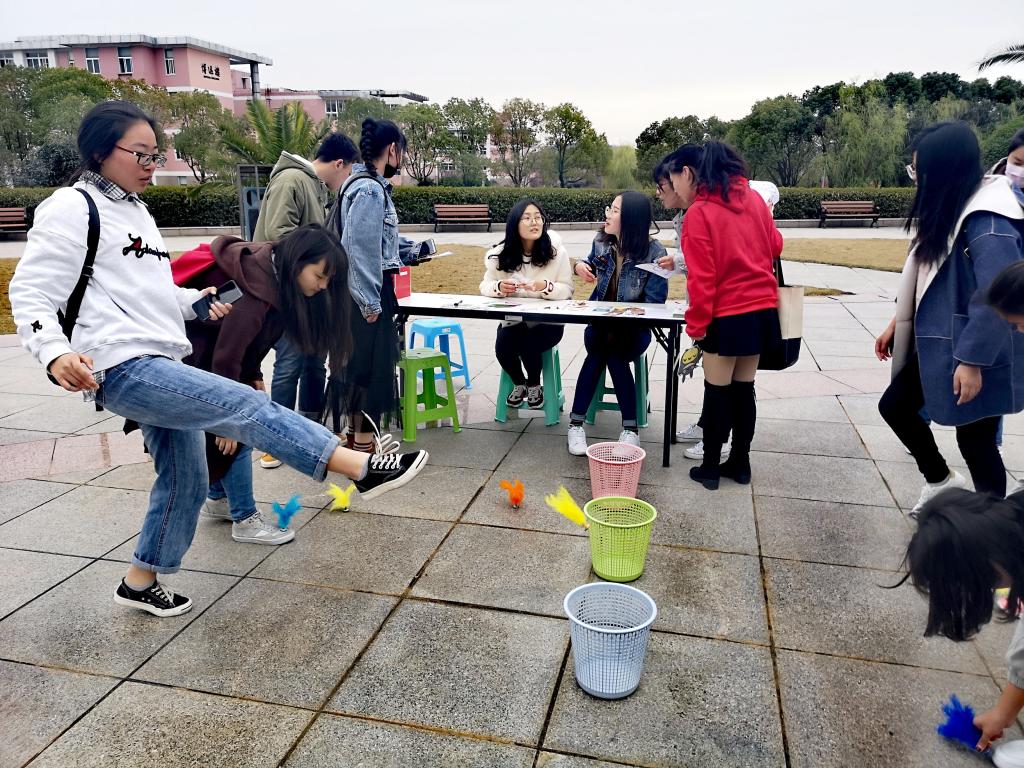 本次活动设有5个关卡,同学们通过收集分别印有“我爱320”字样的卡片来换取相应的奖品。“心理知识竞答”区前,同学们神情专注。竞答之余也帮助同学们了解了一些心理知识;“沙盘游戏”的帐篷里,同学们对沙盘里的布置谨慎地进行选择,心理健康教育与咨询中心的老师则在一旁循循善诱,进行心理剖析。老师们通过同学的摆放了解同学们的内心,并为同学们开解烦恼,提出建议。参与活动的宋同学说:“远离家乡,独自来南京求学,我以为我是毫无牵挂的。但这个心理测试告诉我,我其实对家是有牵绊的,以后还是要多与家里联系。这个活动给了我一个认识自我的机会,挺有意义的。”隔壁帐篷里,只见同学们一个个鼓足了腮帮子,吹得乒乓球在几个装满水的杯子中旋转跳跃;踢毽子和组队踩气球处最为热闹,不听话的毽子总是无法顺利被踢入桶内,同学们一番抓耳挠腮后,纷纷找到了技巧;踩气球的二人则是对对方的气球虎视眈眈,各种出其不意的攻击让各组比赛十分精彩;熊本熊爱的抱抱向同学们传递了爱与温暖,“心指传情”用手语悄无声息地表达着爱意;一旁相对安静的“心愿展板”区,大家认真地写下自己美好的愿望,将温暖传递下去……