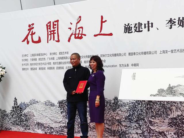 4月13日,我校艺术设计学院副教授施建中在上海诺宝艺术馆举办主题为“花开海上”的国画作品展,来自江浙沪的文化、教育、美术、收藏与企业界相关人士及书画爱好者共百余人出席展览开幕式并观展。