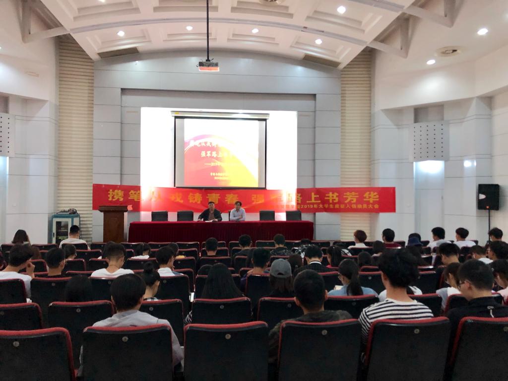 5月9日晚,营销与物流管理学院“携笔从戎铸青春 强军路上书芳华”2019年大学生入伍动员会在仙林校区德经楼二楼报告厅举行。我校人民武装部、营销学院相关领导,退役复学学生代表及符合参军入伍条件的学生参加了动员会。动员会由营销学院副书记周进进主持。