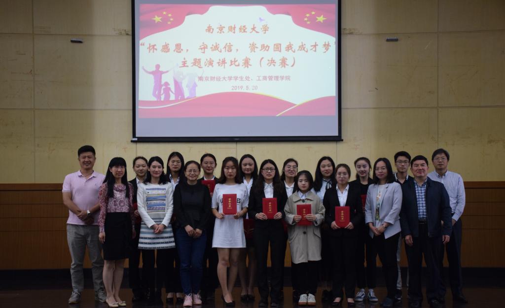 5月20日晚,我校“怀感恩,守诚信,资助圆我成才梦”主题演讲比赛在仙林校区德济楼报告厅举行。此次演讲比赛由党委学生工作部主办、工商管理学院承办,党委宣传部副部长陈丹,党委学生工作部副部长、学生处副处长张小荣,党委研究生工作部副部长黄建国,党委保卫部、人武部副部长、保卫处副处长张士青,教务处副处长陈志琴,马克思主义学院副院长茆素琼担任评委。工商管理学院党委副书记杨华及相关学院师生代表现场观摩比赛。