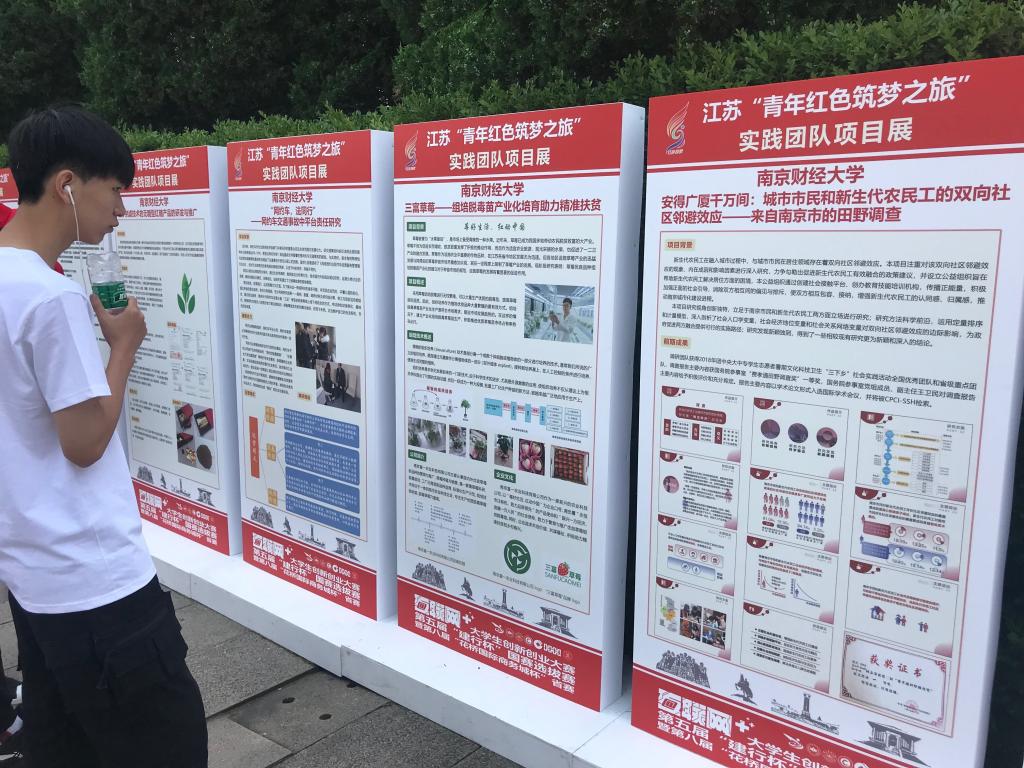 我校经济学院《安得广厦千万间:城市市民和新生代农民工的双向社区邻避效应——来自南京市的田野调查》(项目成员:朱雨瑶、葛菲、韩艺、曾越,指导老师:张成)、艺术设计学院《三富草莓——组培脱毒苗产业化培育助力精准扶贫》(项目成员:窦三丰、夏苏玉、陶素敏、李文雪、王叶蓁、公丕海、陈慧茹、许冰冰、张澍、吴雨豪、李思含、姚雅卿、徐阳、彭彪,指导老师:李龙生、吴小明、张昕欣)、法学院《“网约车,法同行”——网约车交通事故中平台责任研究》(项目成员:唐嘉源、王立斌、刘永琰、孙秀雯、王丽丽、马玥、张璐、赵俊斌、杨维韬,指导老师:钱玉文)、食品科学与工程学院《基于纳滤技术的无糖产品的研发与推广》(项目成员:包伊凡、孙璐、司家郡、卢玉、柳雯雯、薛佳敏、颜铭秀、貌学俊,指导老师:汪芳)等四个项目入选实践团队项目展。其中,《基于纳滤技术的无糖产品的研发与推广》项目与宜兴正玉家庭农场达成合作意向并现场签约。