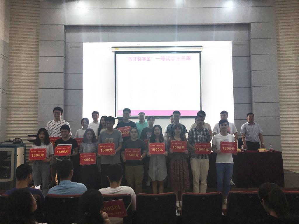 获“菁才奖学金”一等奖学生上台领奖