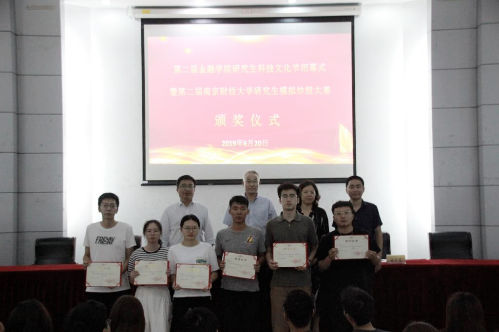6月20日下午,金融学院第二届研究生科技文化节闭幕式暨我校第二届研究生模拟炒股大赛颁奖仪式在仙林校区德经楼报告厅举行。校党委常委、副校长张为付出席闭幕式,金融学院党委书记李玉琴、院长卞志村、副院长姚定俊、部分老师、获奖同学及金融学院2018级全体研究生参加了本次活动。颁奖仪式由李玉琴书记主持。