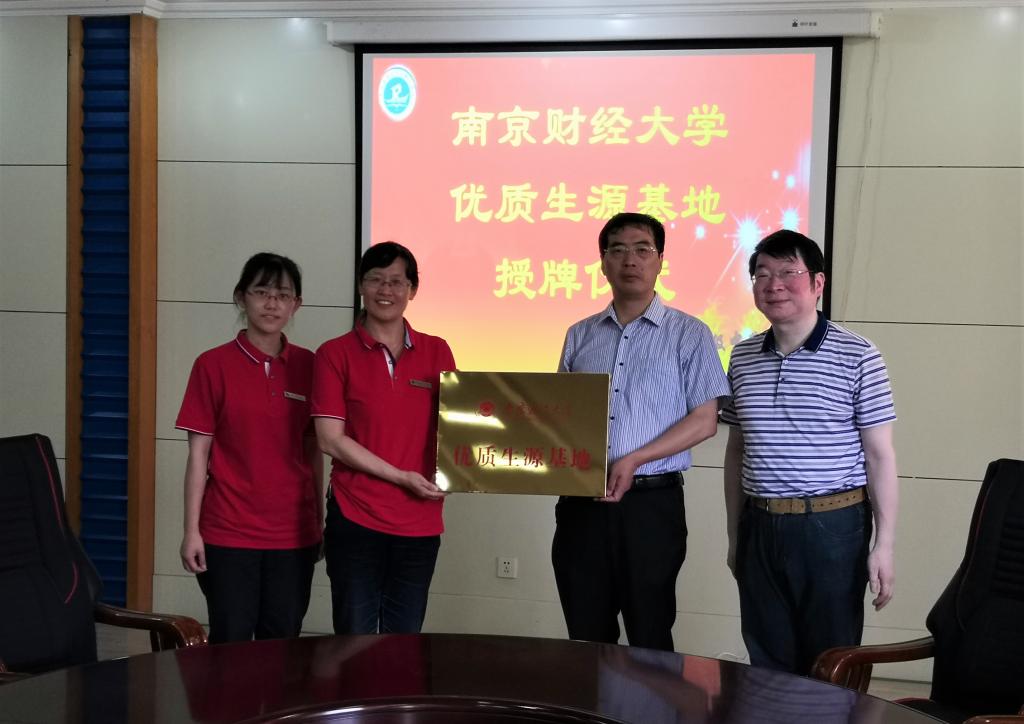 周亚芳书记与王泰山校长代表两校签订了《南京财经大学优质生源基地建设协议书》,并代表学校授予江苏省句容高级中学“南京财经大学优质生源基地”铜牌。