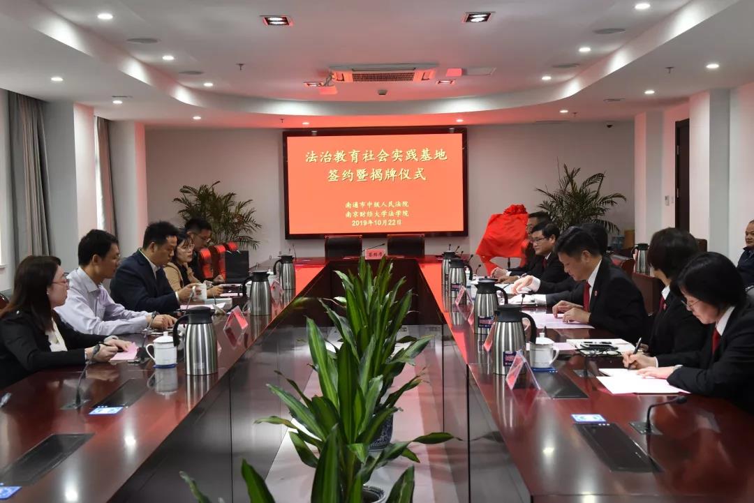 10月22日下午,法学院与南通中院举行合作共建签约暨揭牌仪式,南通中院党组书记、院长曹忠明,党组副书记、副院长卢旭光,法学院党委副书记龚莉红、副院长胡宜奎等出席活动。签约仪式由南通中院党组成员、政治部主任刘碧波主持。