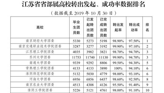 江苏省省部署高校转出发起、成功率数据排名
