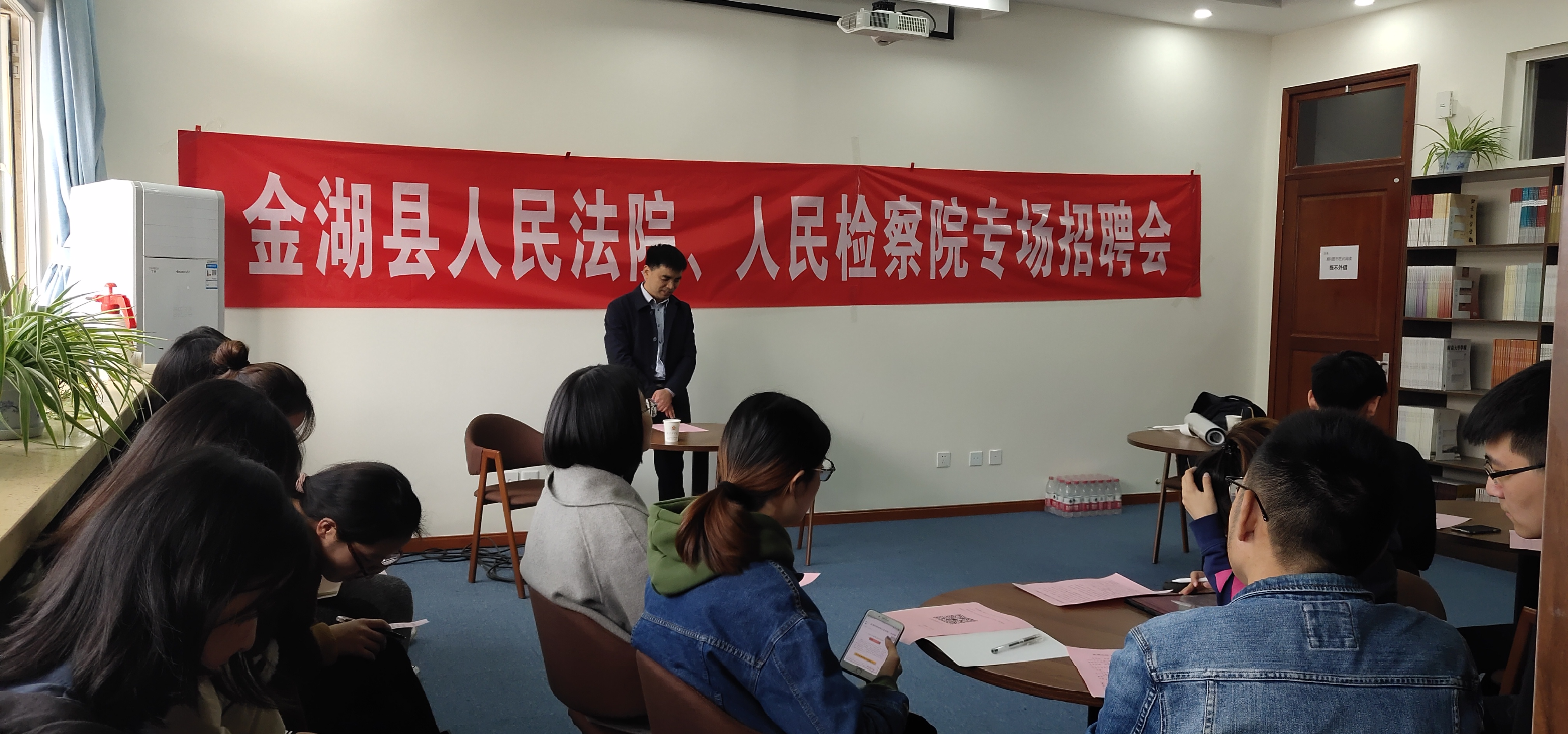 11月2日下午,法学院在仙林校区德正楼王佩图书室举办了金湖县人民法院、人民检察院专场招聘会。法学院部分本科生及研究生参加了招聘会。
