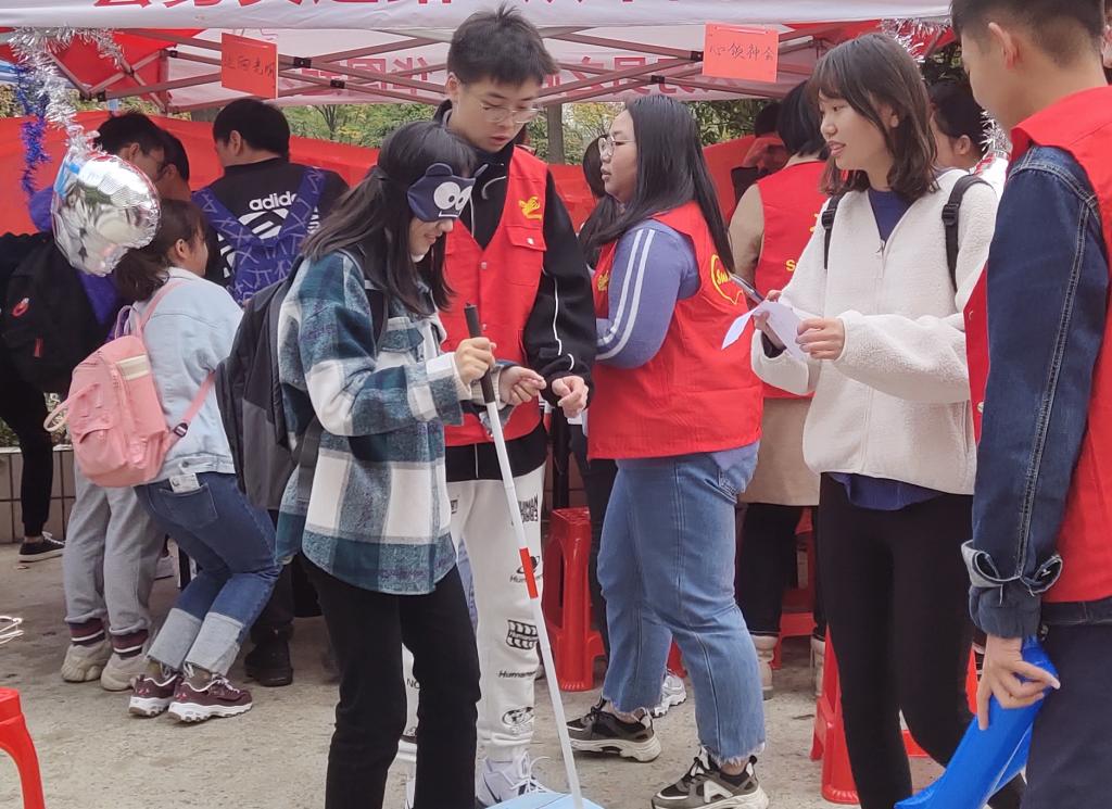社团指导单位国际经贸学院党委副书记季霞表示:“以有趣的方式吸引了同学们的关注,积极地参与活动,切身体验和感受到了特殊群体生活的困难和不便,这样的活动让更多的了学生了解到特殊群体生活的不易,呼吁大家关爱特殊群体。”