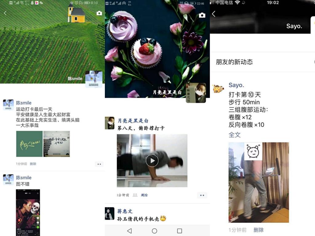 为期十天的打卡活动过程中,学生们积极利用家中的现有条件进行体育锻炼。大多数同学进行了平板支撑、仰卧起坐等简易的有氧运动,以锻炼横腹肌力量提升自我免疫能力;有条件的同学则利用家中跑步机坚持长、短跑;也有同学自学舞蹈,发展兴趣爱好的同时也锻炼了身体、充实了假期。金数1902班徐鸿同学坚持每天长跑,在他看来,强大的免疫力才是抵抗疾病的良药;数学1901班王一茹同学认为运动是一种乐趣,羽毛球是她每天的欢乐源泉;金数1601班朱海涛同学也在运动的过程中锻炼了自己的耐力,提高了自己的生活质量……