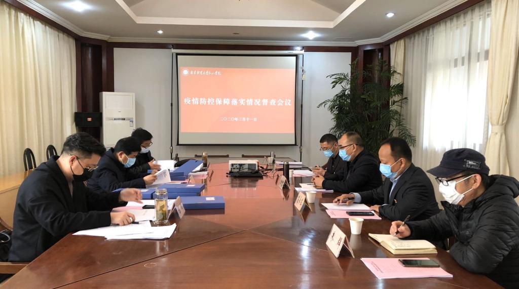 王兴伯书记介绍了本次督查的目的、基本内容、主要方式及工作要求。鞠明富书记向督查组汇报了学院“三案九制”“四个一”等防疫制度、方案的制订和落实情况,以及人员健康报告工作机制、校园管控、防控物资储备、应急预案制定、应急演练开展、隔离观察场所建设等方面的情况。他表示,在学校党委行政以及镇江市、句容市政府的关心指导下,学院疫情防控工作按照上级要求周密部署,各项保障工作井然有序。