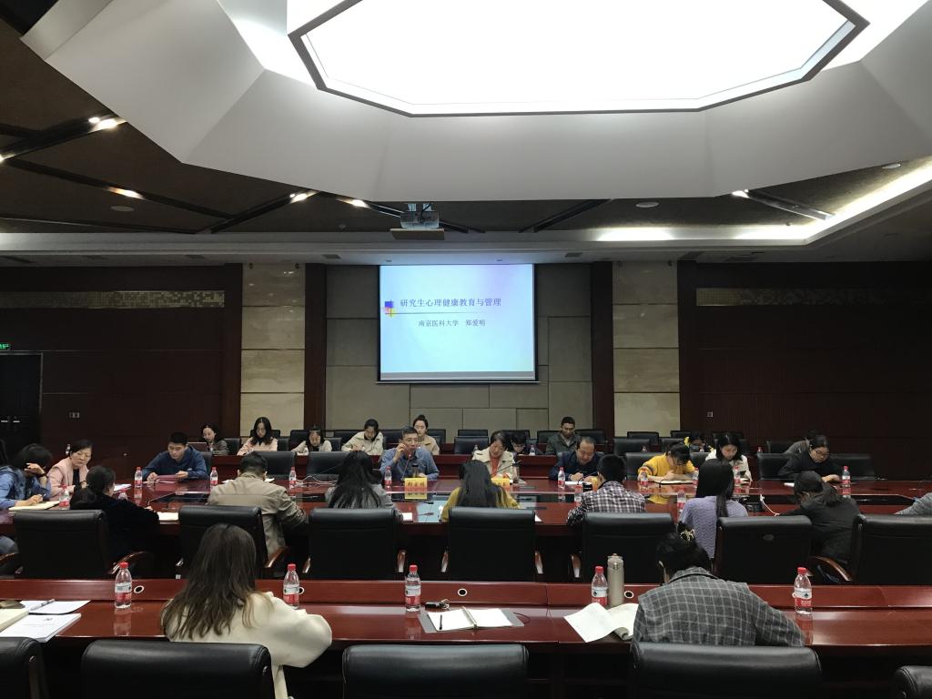 随后,南京医科大学马克思主义学院副院长、心理学博士郑爱明作了题为“研究生心理健康教育与管理”的报告。郑爱明教授结合自己的门诊、咨询经历分享了大量研究生心理健康危机干预案例,以幽默风趣的语言就研究生心理健康现状以及如何对研究生进行心理教育与管理两个方面进行了讲解。他表示,教师作为学生的引路人,要与学生保持密切联系,关注他们的生活状况与心理状态,做好心理问题管理工作。