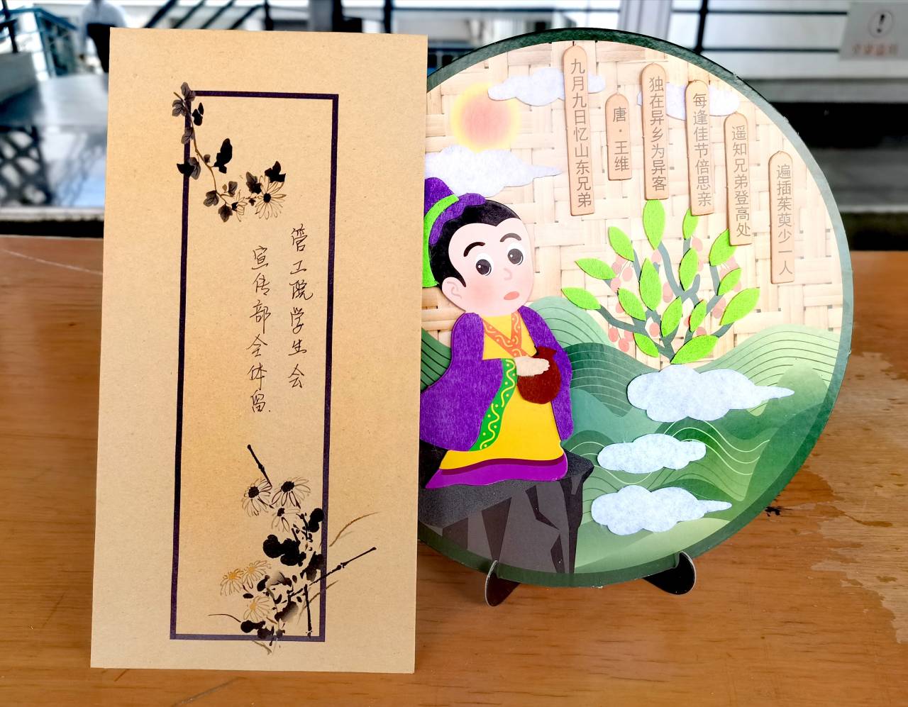 管理科学与工程学院手制Q版重阳布贴画送长辈