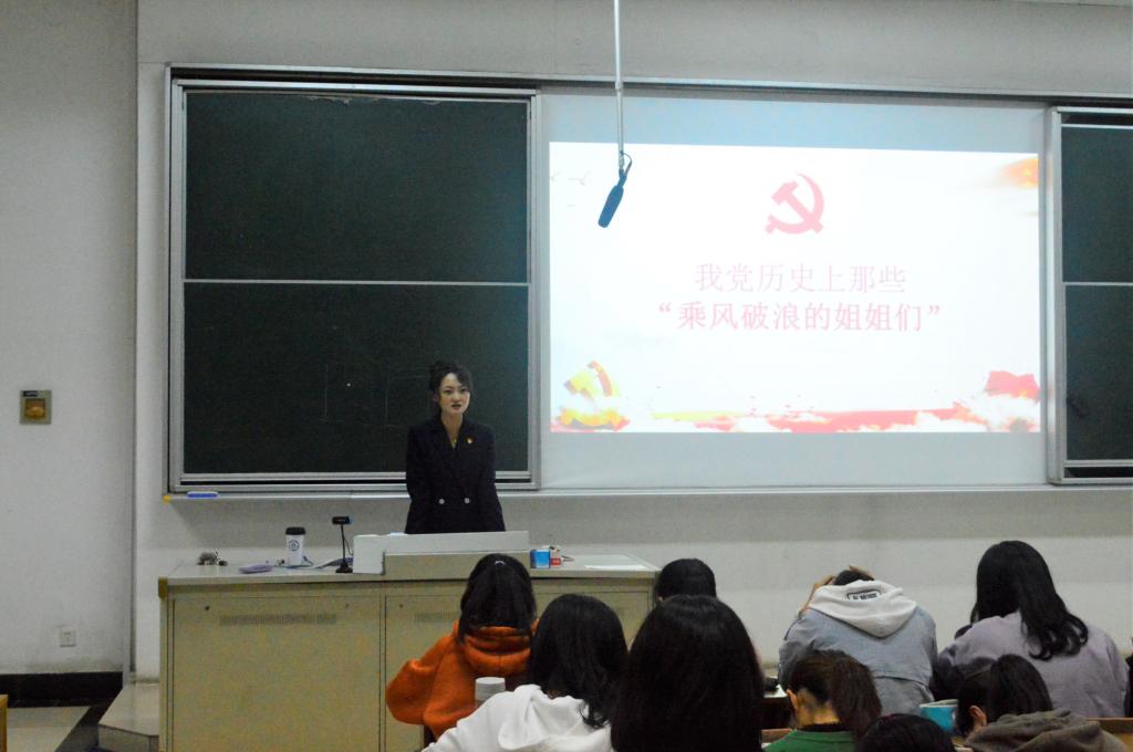 全真真老师以“我党历史上那些‘乘风破浪的姐姐们’”为主题,带领同学们“走近”缪伯英、向警予、赵一曼、江竹筠等我党历史上优秀的女共产党员们:中国第一个女共产党员、妇女解放运动的先驱缪伯英同志三十年的人生岁月一直在追求光明的路,更为革命以身献党;杰出的共产主义战士向警予同志为中国妇女运动奉献全部,即便在被押去刑场的路上也不忘高歌;优秀的共产党员赵一曼同志积极与敌军斗争,即便受到严刑拷打也不透露有关抗联的任何信息……回顾历史感受革命历程的坎坷,同学们深刻感悟新中国成立过程中先辈付出的血汗,透彻了解中国共产党人建设中国道路的艰难险阻。