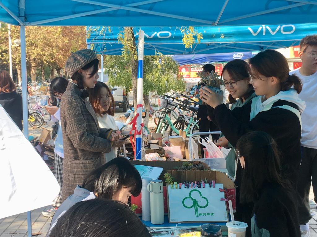 11月14日,由我校环境保护协会主办的垃圾分类活动在仙林校区北苑食堂前广场火热进行。现场人来人往,热闹非凡。