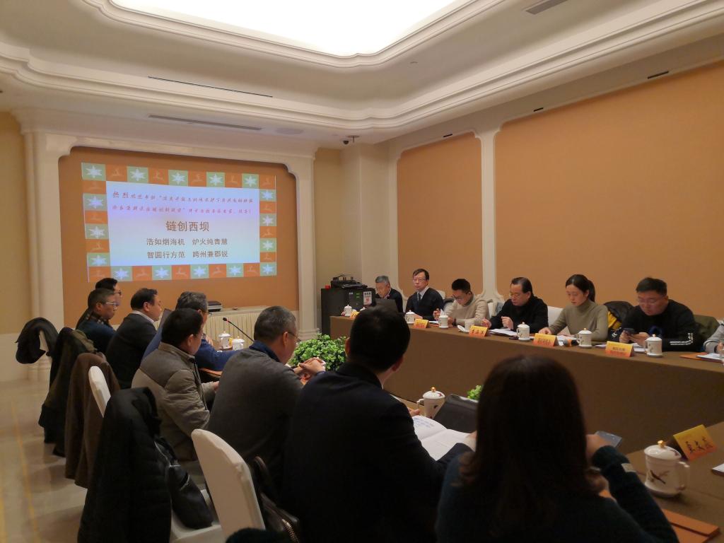 江北新区枢纽办部长全力对课题及评审要求作了简要说明,副主任季海洋就课题的研究价值、重要成果,以及课题组的良好表现等给予了高度肯定。江苏一带一路研究院院长吴志华代表课题组进行了研究成果汇报与相关问题阐释等,并以一首小诗《链创西坝》表达了对江北新区西坝港枢纽经济区的美好祝福。
