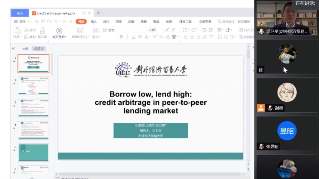 3月14日,应金融学院邀请,对外经济贸易大学副校长、教授吴卫星通过腾讯会议作了题为“Borrow low, lend high: credit arbitrage by sophisticated investors”的讲座。金融学院副院长郭文旌和学院青年教师聆听了讲座。讲座由金融学院院长张成主持。