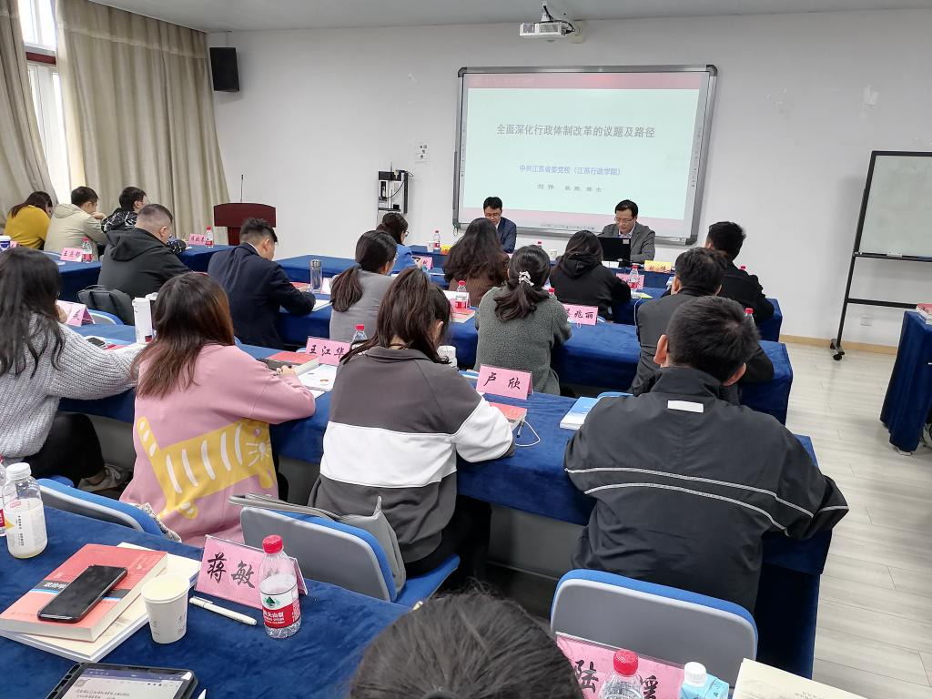 10月16日,应公共管理学院邀请,江苏省委党校科研处处长刘伟教授在仙林校区德济楼502作了题为“新时代全面深化行政体制改革的议题及路径”的讲座。公共管理学院部分师生聆听讲座。