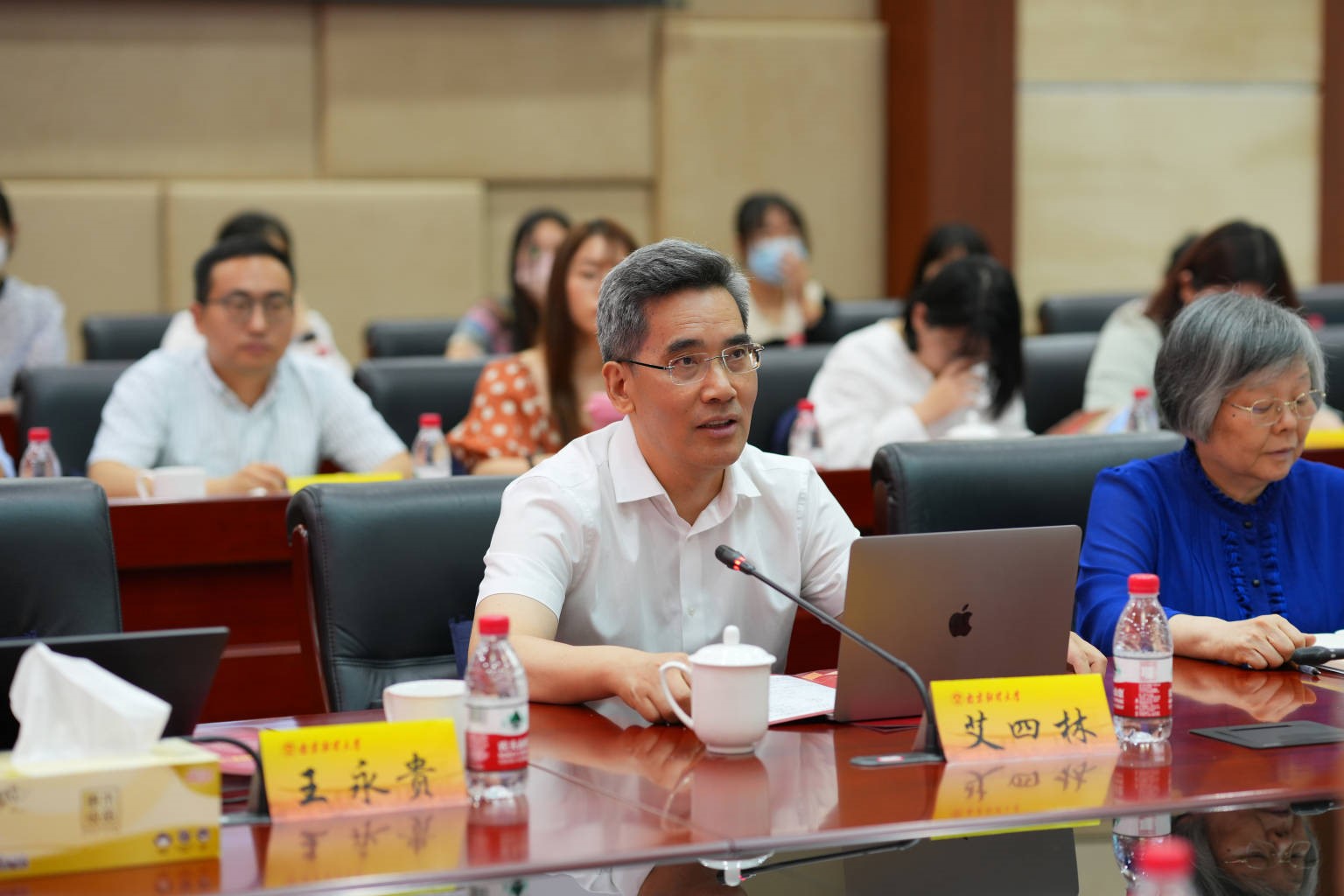 为深入学习领会习近平新时代中国特色社会主义思想,6月12日,我校在仙林校区工科楼二楼会议室举办学习贯彻习近平新时代中国特色社会主义思想主题教育报告暨学理化阐释研讨会,此次研讨会由我校科研处和党委宣传部承办。党委常委、副校长华仁海教授,正校级领导焦富民教授、党委常委、宣传部部长石奇教授出席会议。清华大学习近平新时代中国特色社会主义思想研究院院长艾四林教授,东南大学原党委书记、江苏省社科名家郭广银教授,山东大学特聘教授、山东省社科联特聘专家包心鉴教授,南京师范大学二级教授王永贵教授等来自清华大学、山东大学、南京大学、东南大学、南京师范大学、苏州大学等高校的专家和代表,我校科研处处长梅景辉教授,马克思主义学院党总支书记陈翔及相关单位师生代表参加研讨会。