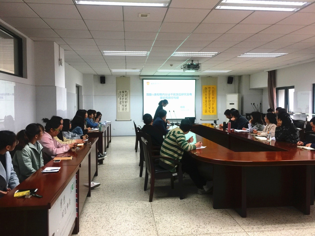 杨倩讲师以双酚A类似物为例,通过分析双酚A类似物通过环境污染途径对水生生物造成的一系列毒理学效应,以此阐述环境污染物与食品安全的交互作用机制,为环境污染与食品安全学科交叉的研究思路和实验设计提供了参考和启发。