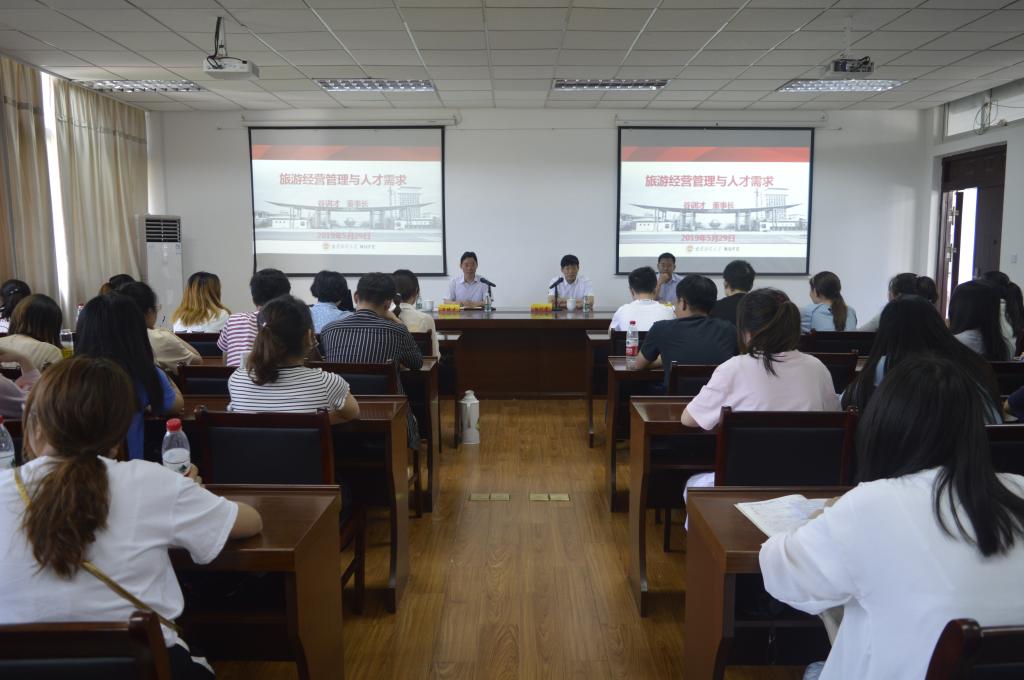5月29日下午,应工商管理学院邀请,我校广东省校友会会长、中国国旅下属企业董事长、86届校友谷训才于我校仙林校区德济楼408会议室作了题为“旅游经营管理与人才需求”的讲座。工商管理学院党委书记万绪才、校友会副处长王冲及旅游管理专业部分学生聆听了此次讲座。讲座由万绪才书记主持。