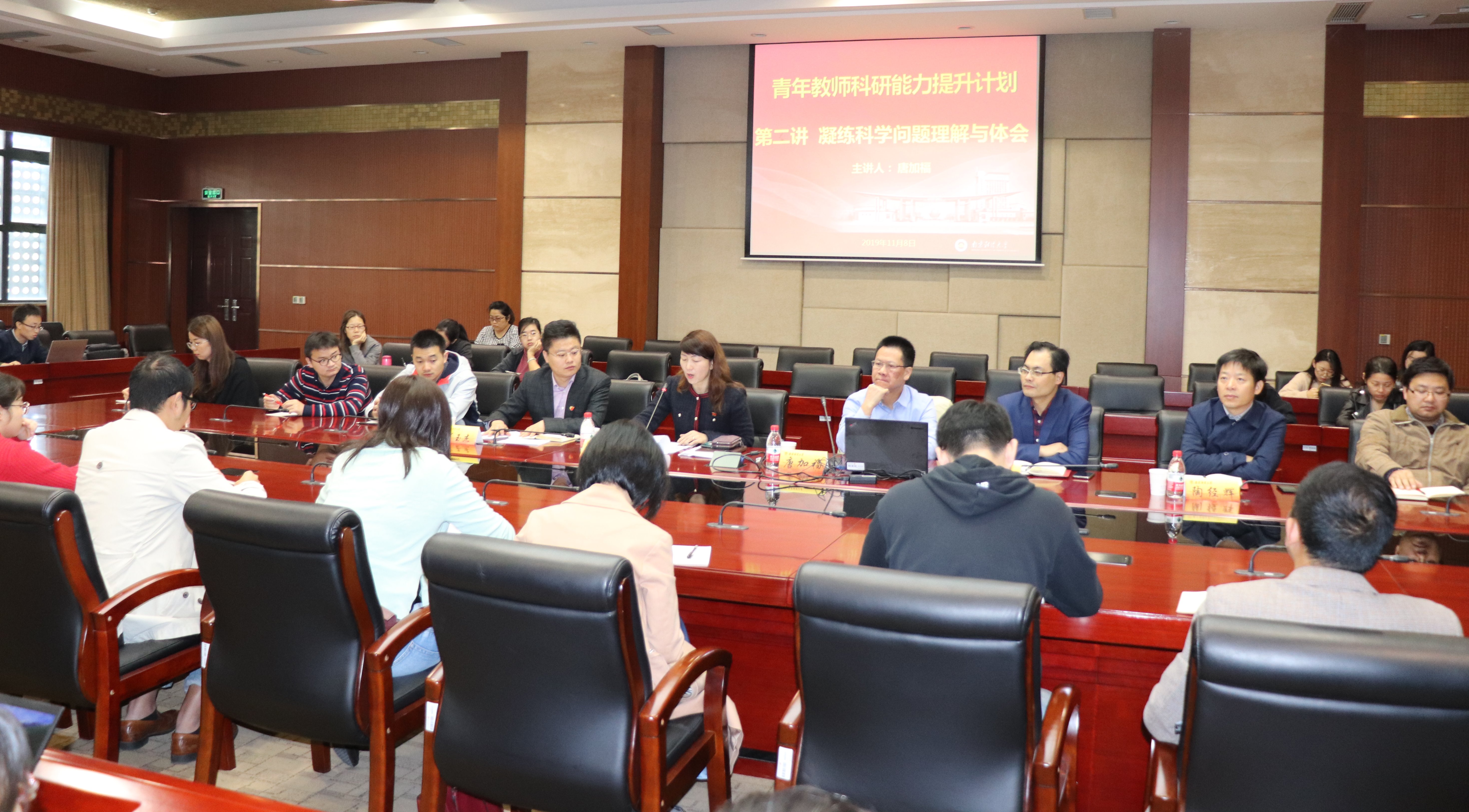 11月8日上午,科研处联合营销与物流管理学院在仙林校区工科楼二楼举办第二期“青年教师科研能力提升计划”讲座。东北财经大学管理科学与工程学院院长、国家自然科学基金委管理科学与工程学科评审专家组成员、国家社科规划基金专家评审组成员唐加福进行主题报告。科研处处长李杏、副处长肖玉杰、营销与物流管理学院院长倪明、副院长陶经辉,营销与物流管理学院、工商管理学院、会计学院、管理科学与工程学院青年教师代表、科研处工作人员100多人参加讲座。讲座由李杏处长和倪明院长主持。