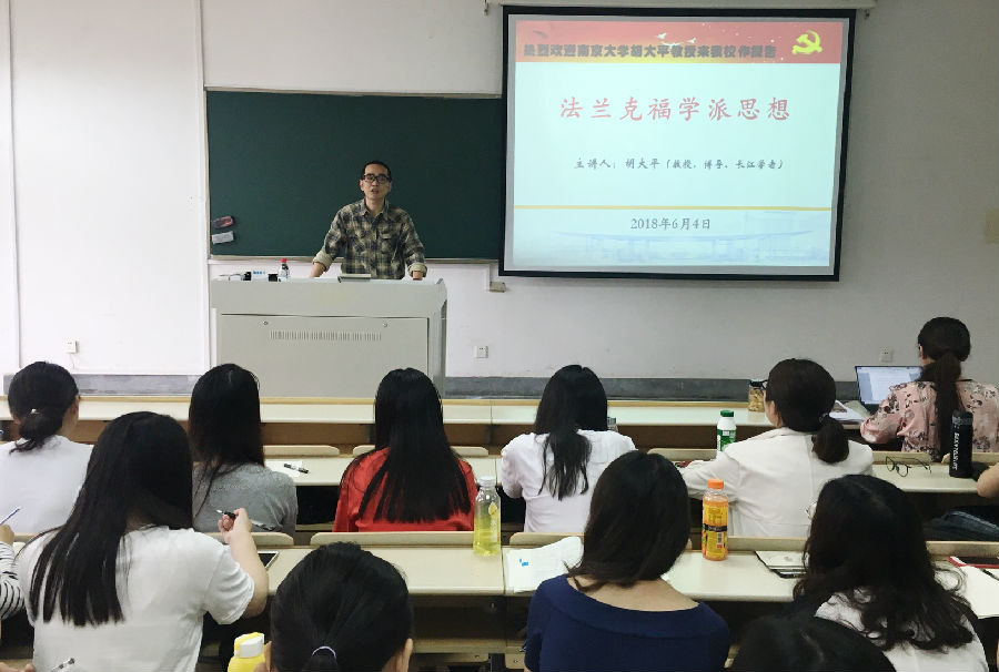 6月4日下午,博士生导师、南京大学马克思主义学院院长胡大平教授应马克思主义学院邀请,在仙林校区德正楼204教室作了题为“法兰克福学派思想”的学术报告,报告由马克思主义学院院长梅景辉教授主持,学院部分教师和全体研究生聆听了报告。