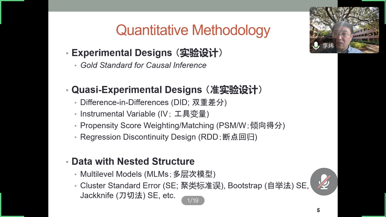 8月7日上午,应公共管理学院邀请,美国佛罗利达大学助理教授李炜在线(腾讯会议)作了题为“Effects of Class Size on Student Achievement: Evidence from China, Europe, and the U.S.”的学术报告。报告由公共管理学院院长黄斌主持,学院部分教师和研究生聆听了报告。
