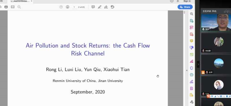 9月29日晚,应财政与税务学院、公共财政研究中心邀请,美国俄亥俄州立大学经济学博士、中国人民大学财政金融学院副教授李戎通过腾讯会议,为我校师生作了题为“Air Pollution and Stock Returns: the Cash Flow Risk Channel”的学术讲座,讲座由财政与税务学院院长、公共财政研究中心主任朱军主持。