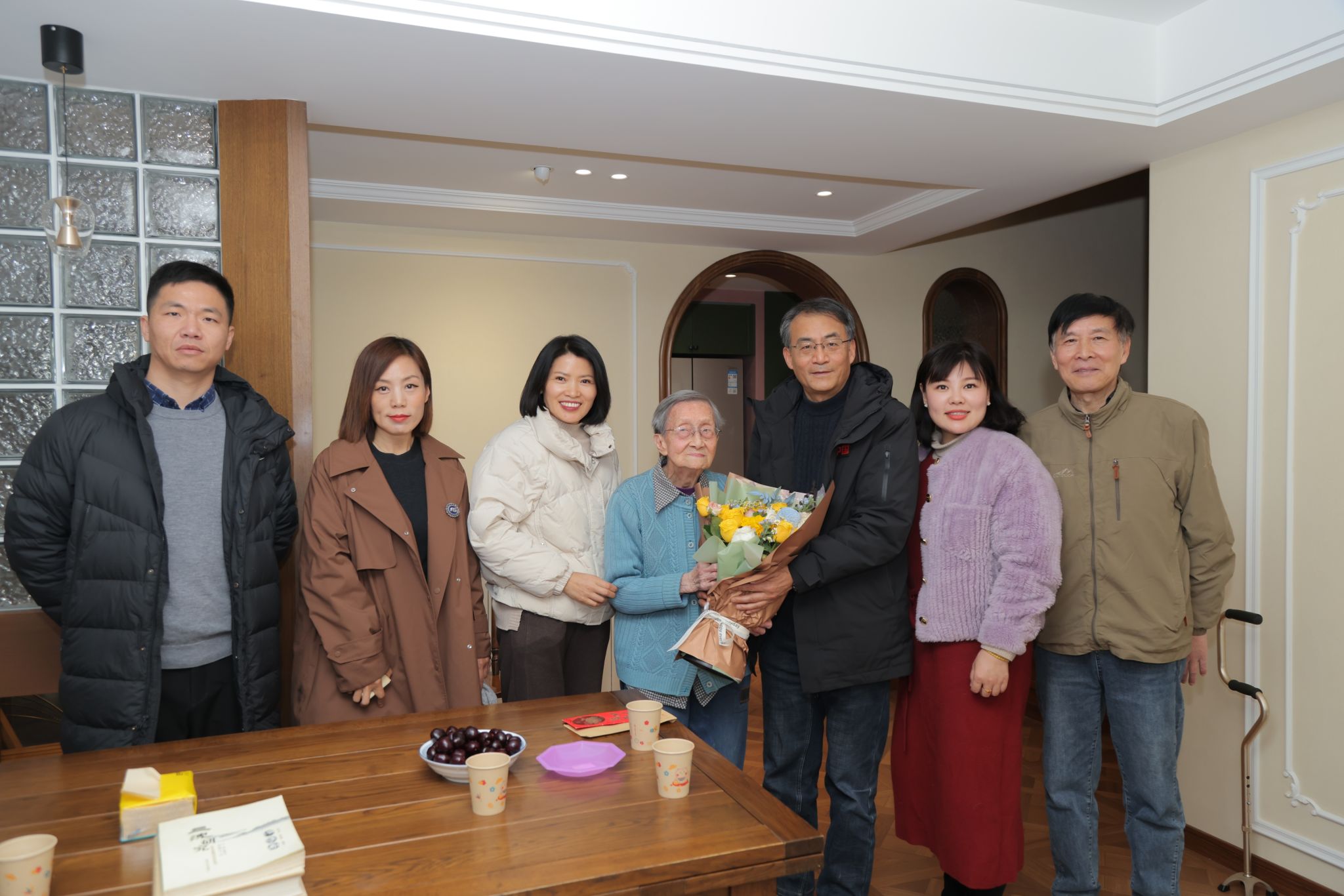 1月9日,南京财经大学校党委副书记李群专程探望了百岁高龄的沈兑老师,感谢她与已故丈夫对学校发展作出的重要贡献。离退休工作处处长唐习华,党委统战部副部长王鑫,党委宣传部副部长龚莉红,校档案馆副馆长、校民建主委安艳杰陪同慰问。