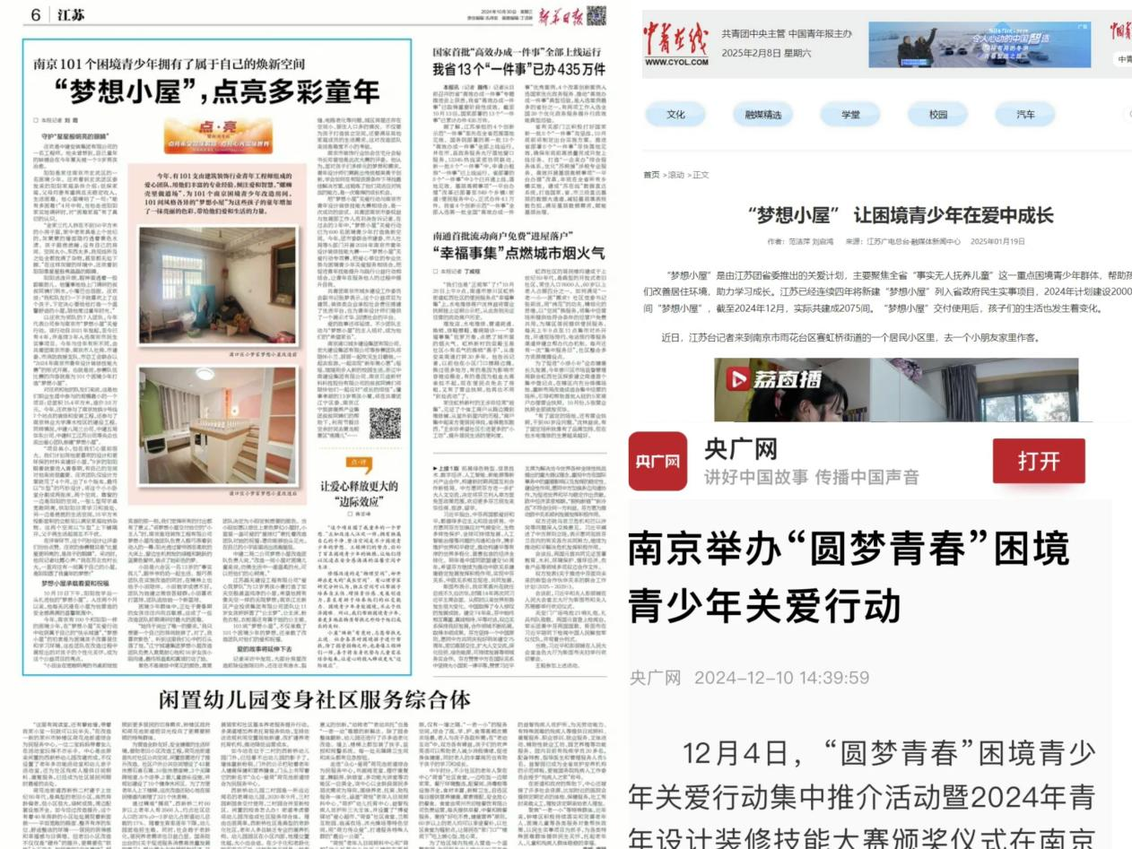 南京市“梦想小屋”获新华日报、中国青年报、央广网等多家媒体宣传报道