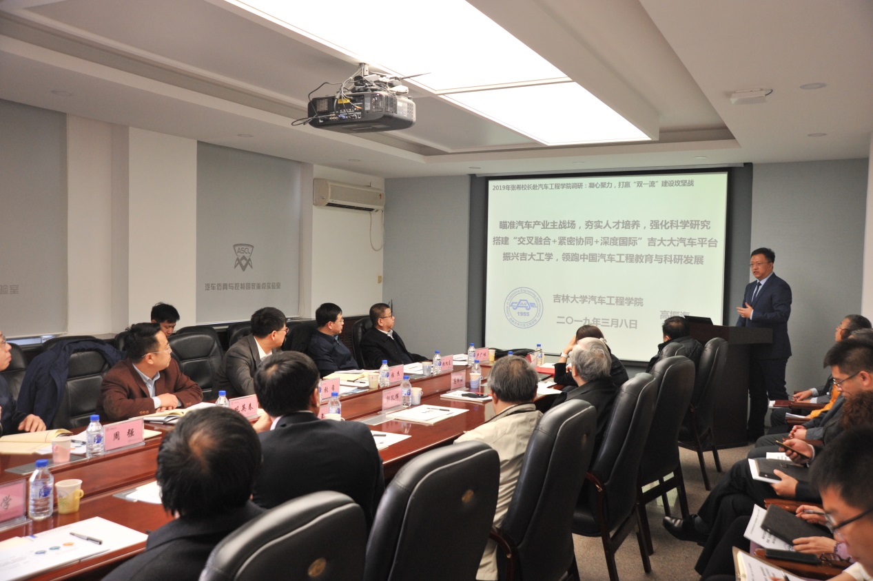 3月8日上午,张希校长访问汽车工学学院,听取了汽车工学院、汽车模拟试验及控制国家重点实验室的工作报告。郭孔辉院士、部分职能部门、学院及重点实验室相关领导、教师代表参加会议。