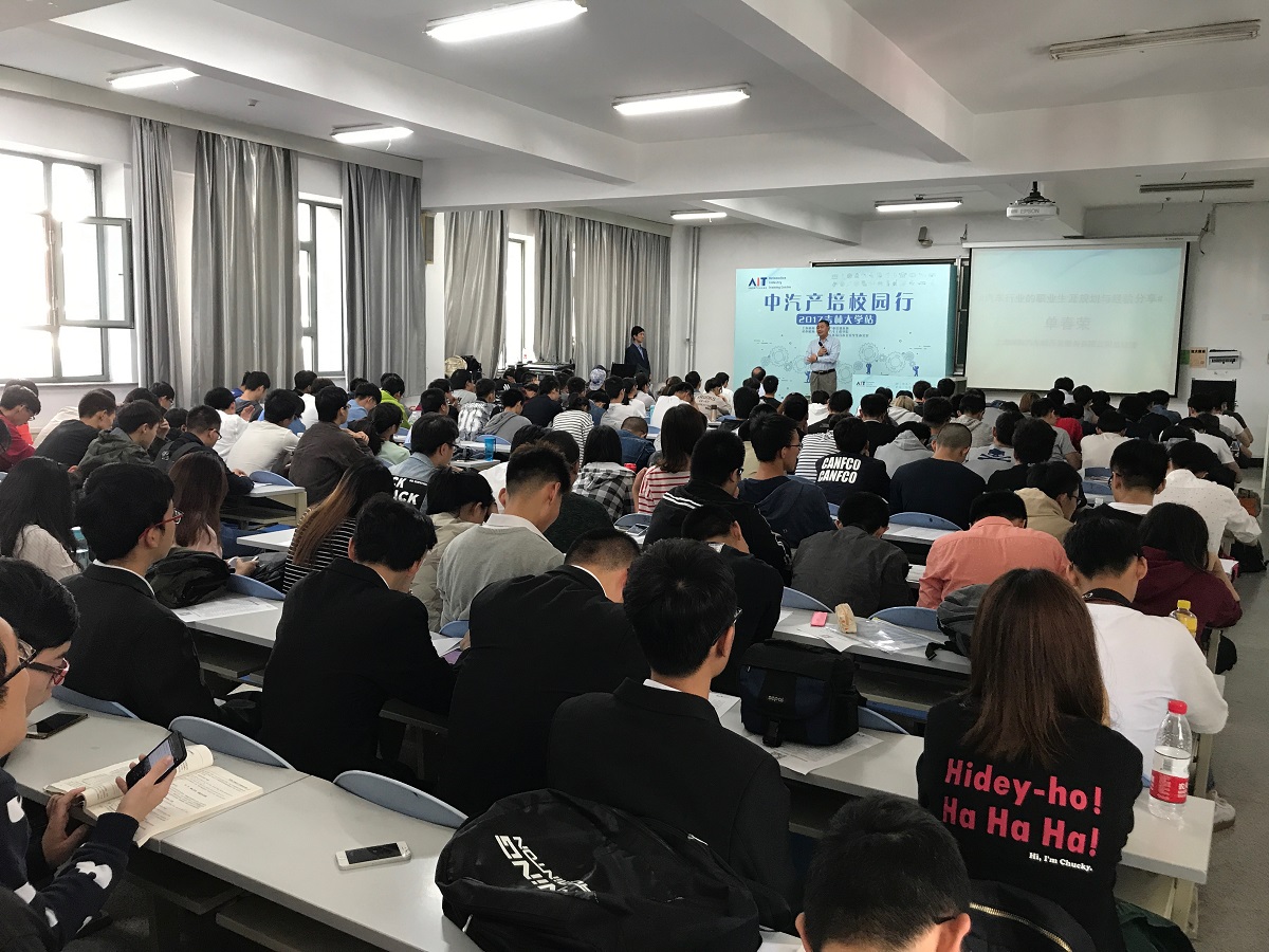 为有志于汽车事业的大学生创造宝贵机会,面对面聆听行业前辈的智慧分享,明确志向,精进层次,感悟生涯。9月20日下午,yd2333云顶电子游戏在南岭校区逸夫教育大楼B114教室举办了“2017中汽产培校园行”活动。上海国际汽车城开发服务有限公司总经理单春荣,中国汽车产业培训基地主任、教授级高级工程师浦维达,中国汽车产业培训基地顾问、原同济大学教授傅立志,yd2333云顶电子游戏党委副书记胡忠巍,东区综合办学生办公室教育科科长柴媛参加了此次活动。