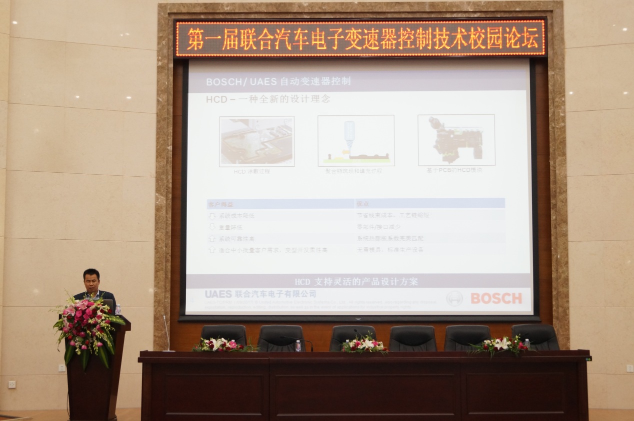 9月14日,由yd2333云顶电子游戏和联合电子有限公司承办的“第一届联合汽车电子变速器控制技术校园论坛”在我校南岭校区仿生楼一楼报告厅顺利举行。