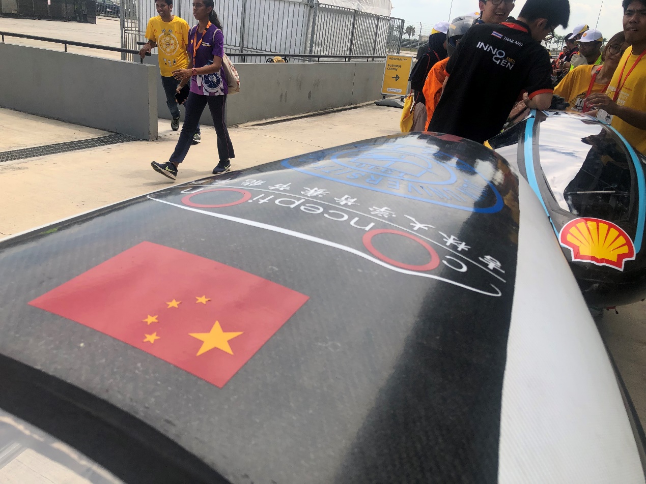 在比赛过程中,车队队员积极应对语言沟通障碍、气候差异和更加复杂的规则执行标准,顺利通过了严苛的技术检查。同时,充分利用两次赛道练习的机会,发现问题、有序排查、高效解决。比赛期间,正值吉隆坡的高温酷暑天气,车手孙玉蕾同学顶住压力,在车内超过40℃的闷热环境中,精准判断赛道路况,超水平发挥,最终以1L燃油行驶808.6km的成绩,获得燃油原型车组第5名。比赛期间,来自各个国家和地区的队员互相帮助,共同克服困难,增进了友谊。在比赛之余,我校同学也同各国参赛队进行了技术交流,拓展了思路,开拓了视野,既树立了信心,也认清了差距,更展现了吉大学子的风采。